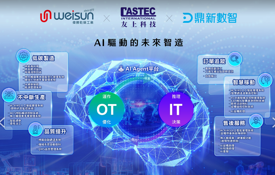 面對智慧製造與永續轉型的雙重挑戰,鼎新數智、友上科技與偉勝乾燥三大專業夥伴強強聯手,將於 8月20日至8月23日 在「2025台北國際自動化工業大展」共同展出。
